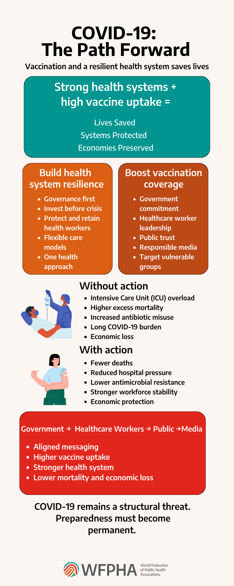 Sklep webinarja je bil, da mora prihodnje upravljanje covida temeljiti na naukih pandemije: na stalnem spremljanju tveganj, hitrem prilagajanju ukrepov in boljši zaščiti skupin, ki nosijo največje zdravstveno breme. Razprava se je zato usmerila v praktično vprašanje, kako iz izkušenj zadnjih let oblikovati bolj odporen in pravičen sistem odzivanja za prihodnje valove okužb in podobne zdravstvene krize.